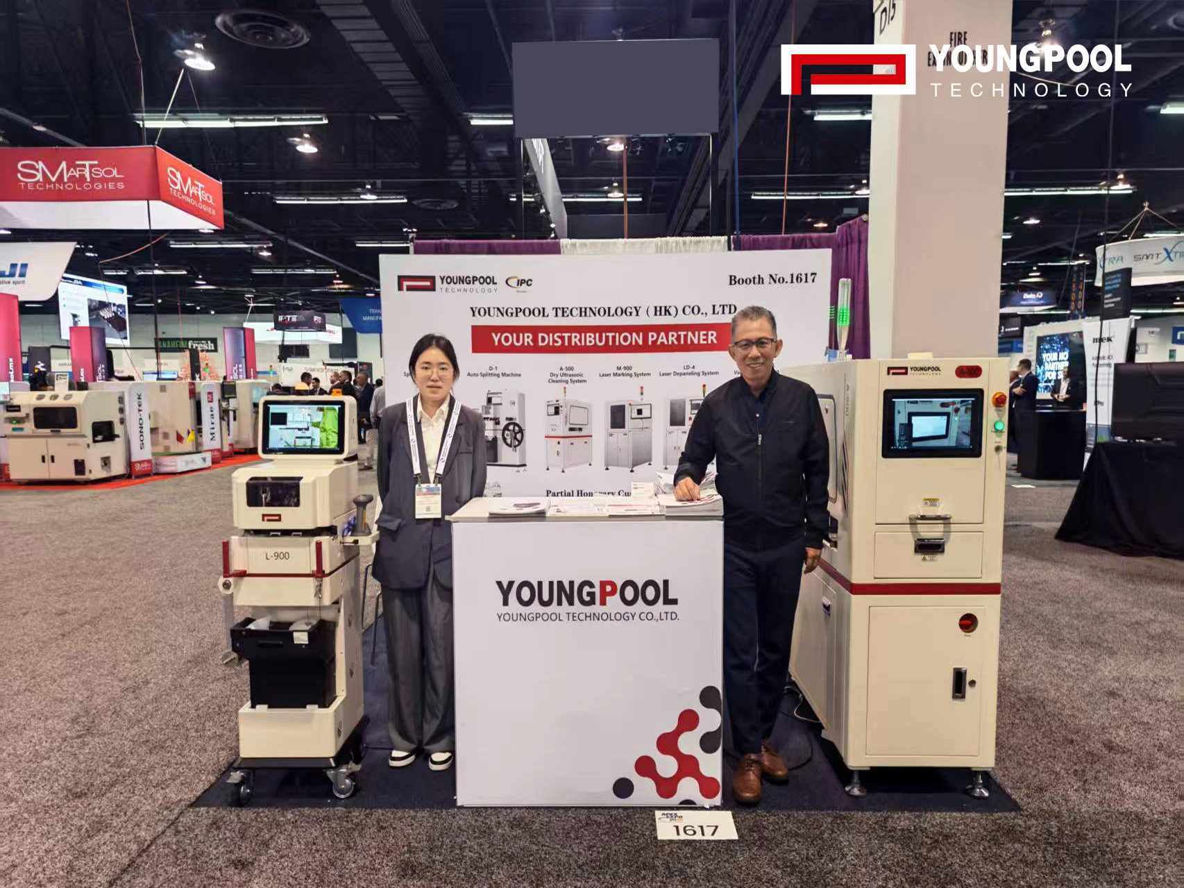 展示会において、ヤングプールは2つの主力製品であるインテリジェントスプライシングマシンとドライ超音波洗浄機に加え、複数のSMTインテリジェントソリューションを重点的に展示し、材料管理から品質管理に至るまでの幅広い機能を体系的に実証した。